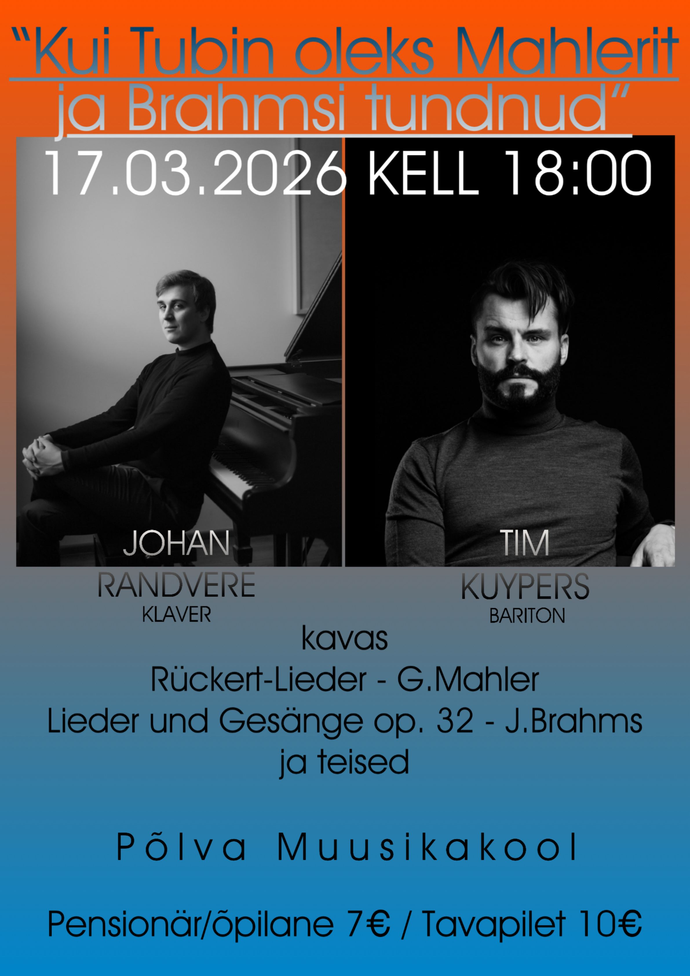 Hollandi bariton Tim Kuypers on üks erakordne muusik ja laulja. Ta on koostööd teinud maailma kõige kuulsamate nimedega nagu Rolando Villazon, Jonas Kaufmann, Kirill Petrenko jpt.